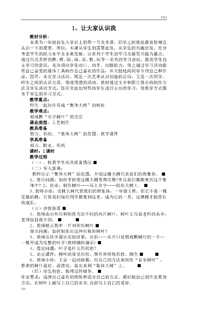 人美版小学一年级上册美术教案.doc