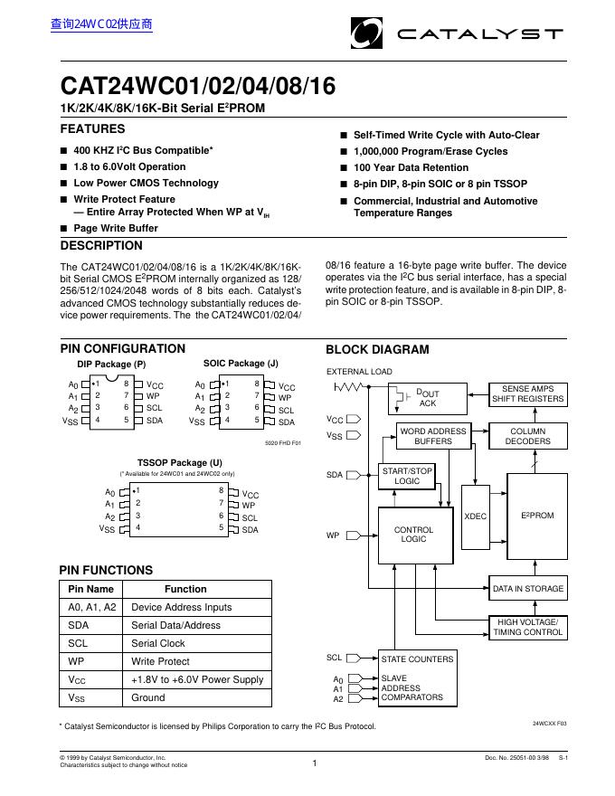 CATALYST CAT24WC01/02/04/08/16 数据手册.pdf