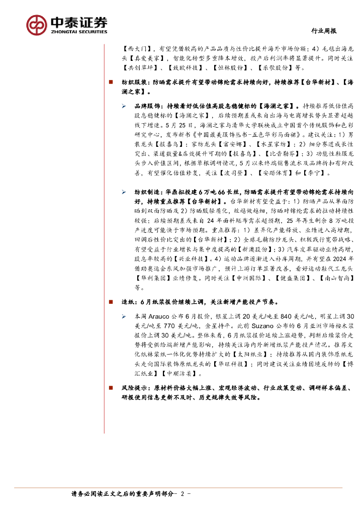 中泰证券:轻工制造及纺织服装行业周报:喜临门联合红星深化以旧换新,6月纸浆报价继续上调.pdf