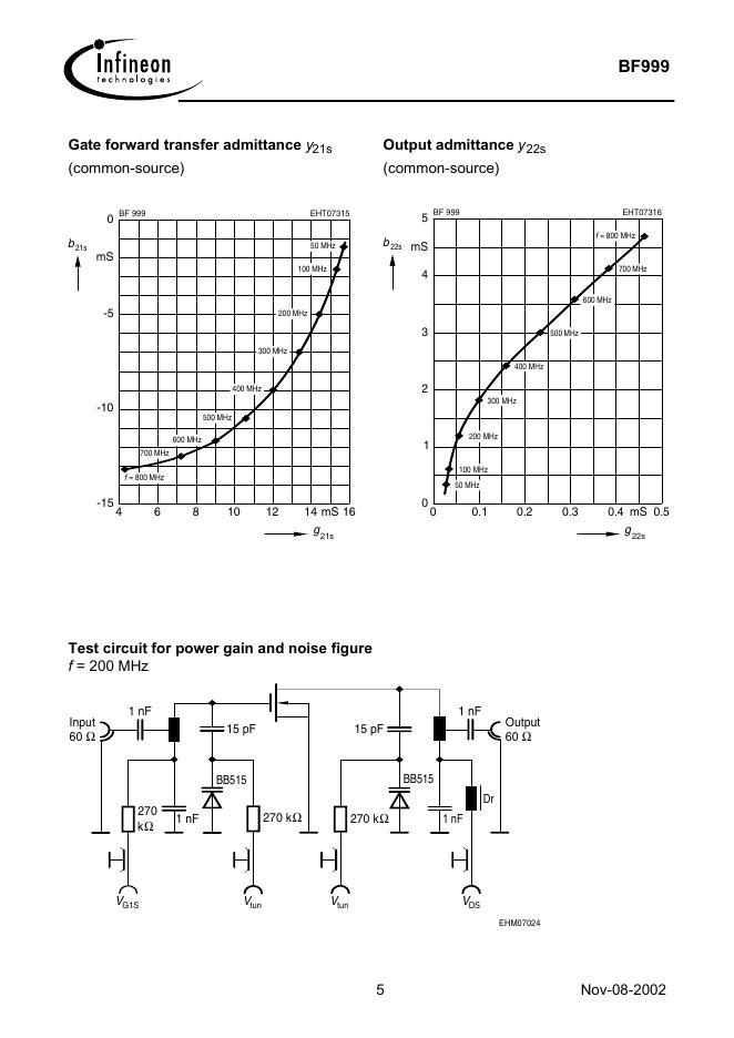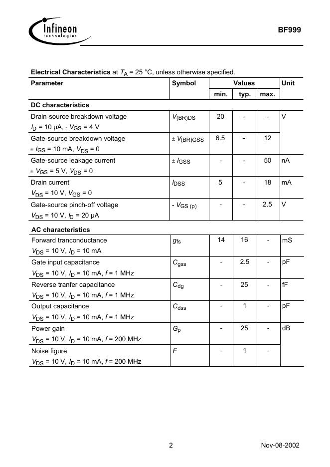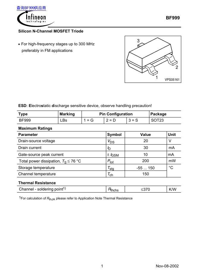 infineon BF999 Silicon N-Channel MOSFET Triode 数据手册.pdf