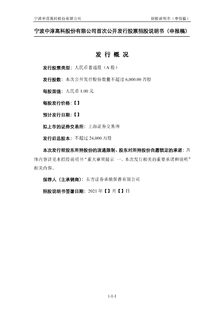 宁波中淳高科股份有限公司上交所主板IPO上市招股说明书.pdf