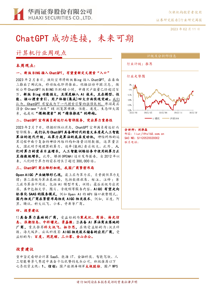 华西证券:计算机行业周观点:ChatGPT成功连接,未来可期.pdf