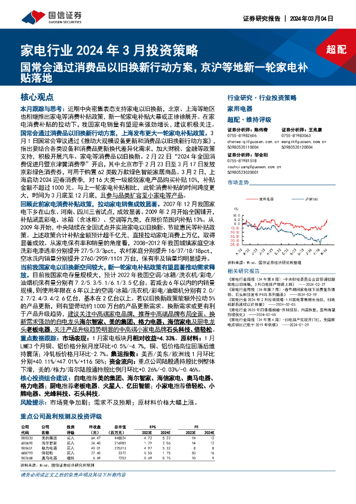 国信证券:家电行业2024年3月投资策略:国常会通过消费品以旧换新行动方案,京沪等地新一轮家电补贴落地.pdf