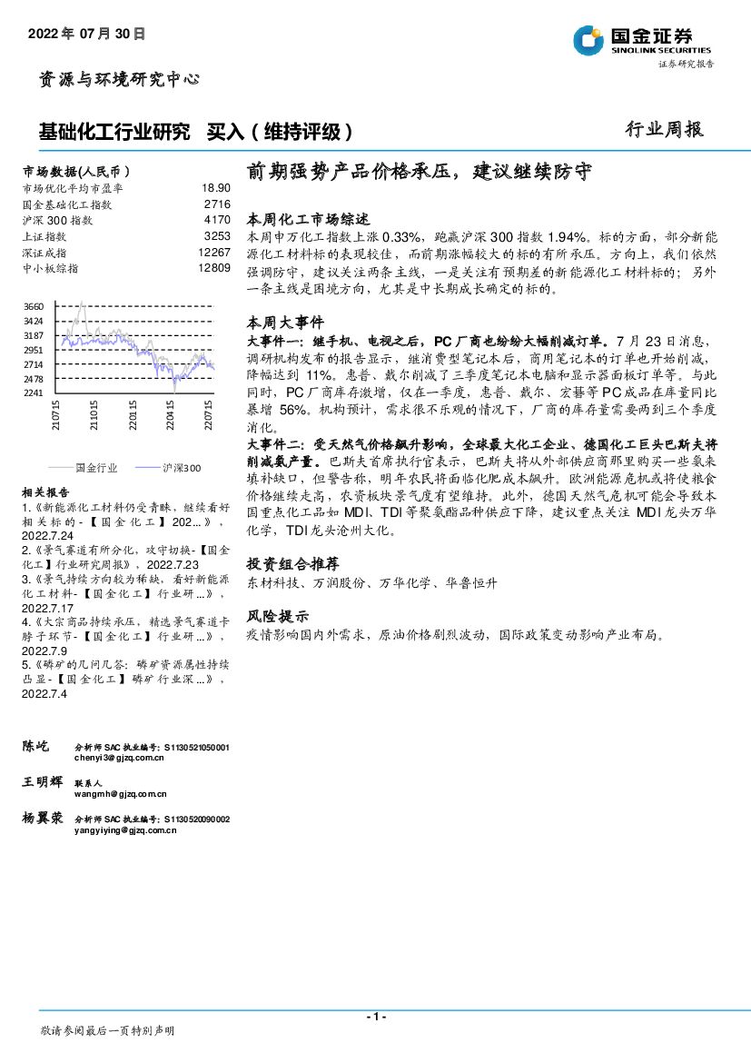 国金证券:基础化工行业研究周报:前期强势产品价格承压,建议继续防守.pdf