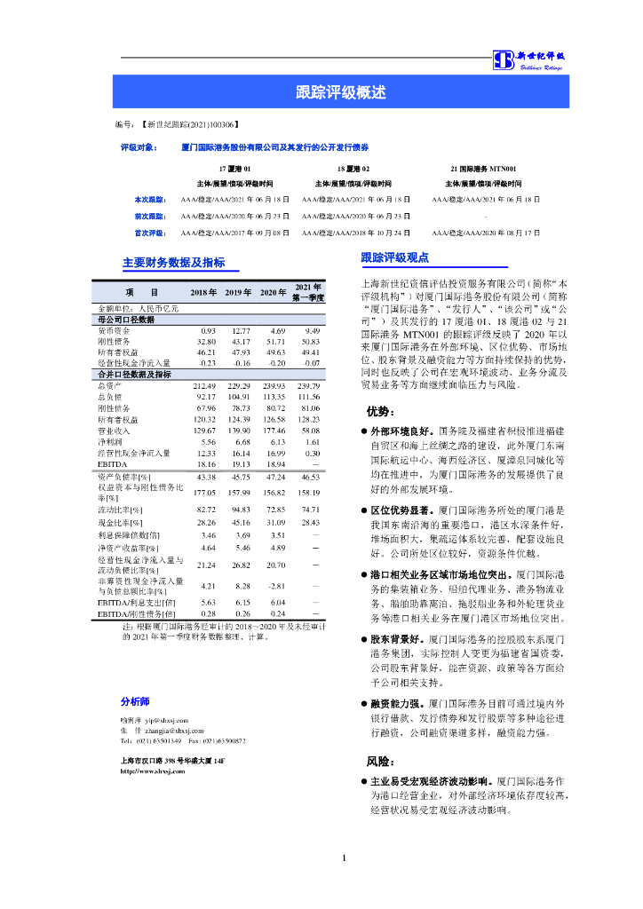 新世纪:厦门国际港务股份有限公司及其发行的公开发行债券跟踪评级报告.pdf