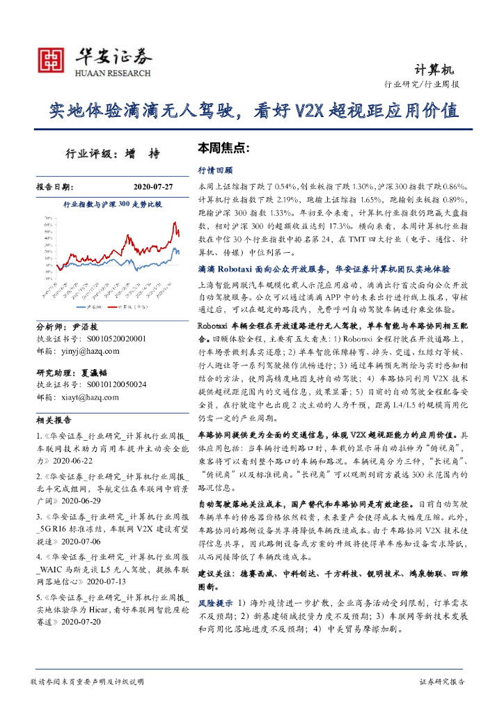 华安证券:计算机行业周报:实地体验滴滴无人驾驶,看好V2X超视距应用价值.pdf