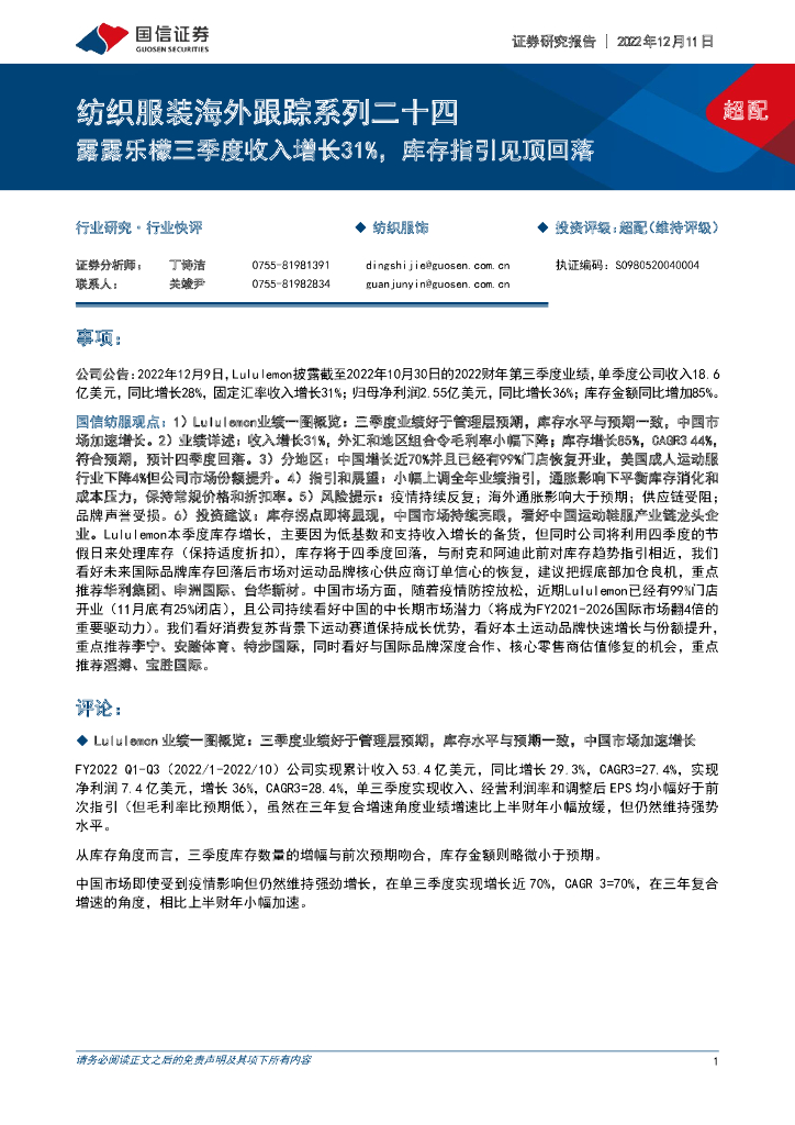 国信证券:纺织服装海外跟踪系列二十四:露露乐檬三季度收入增长31%,库存指引见顶回落.pdf
