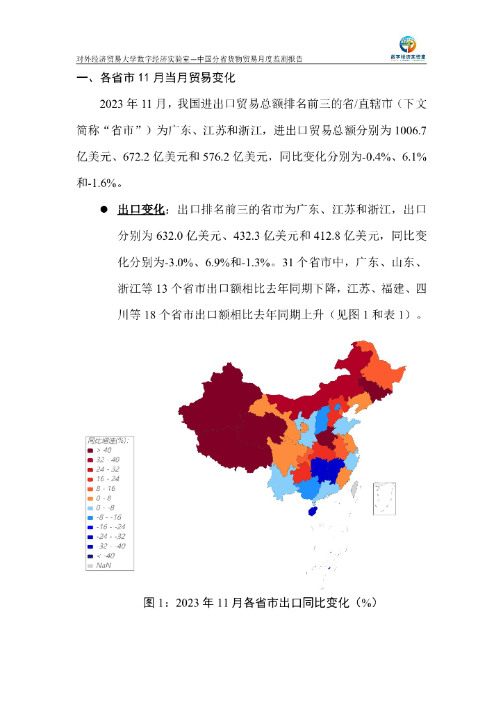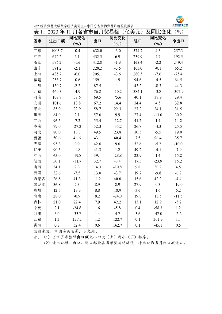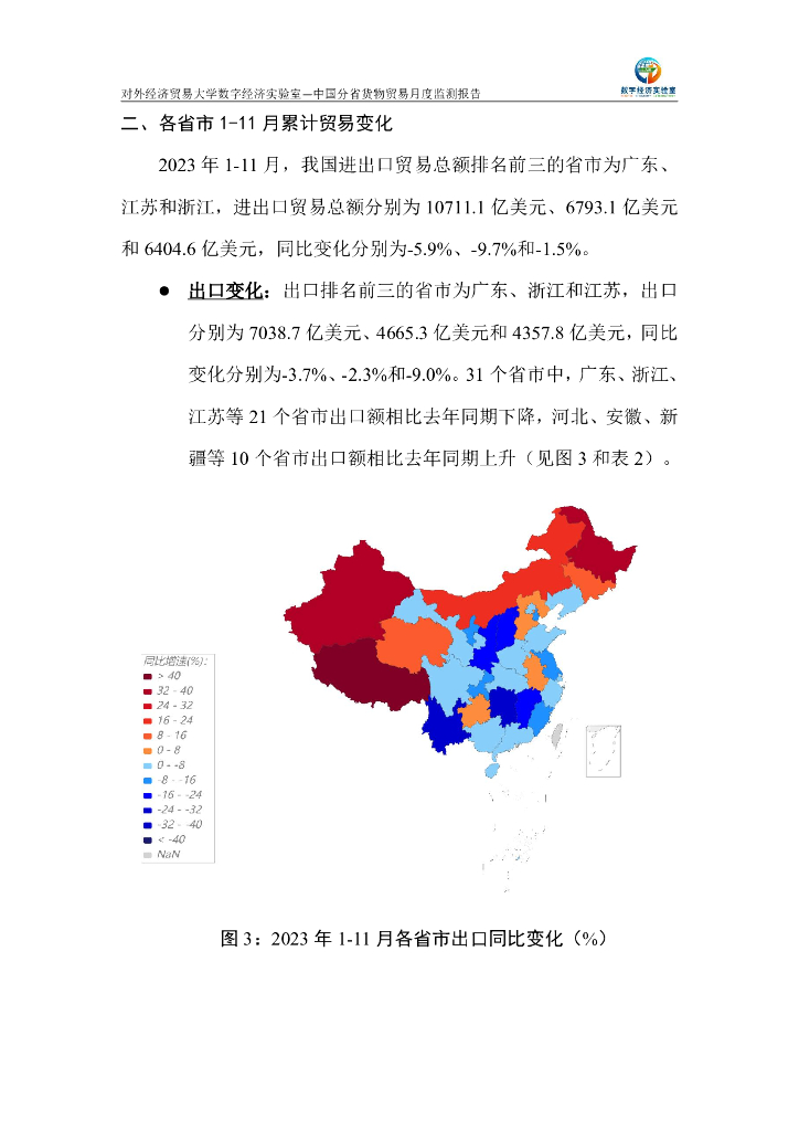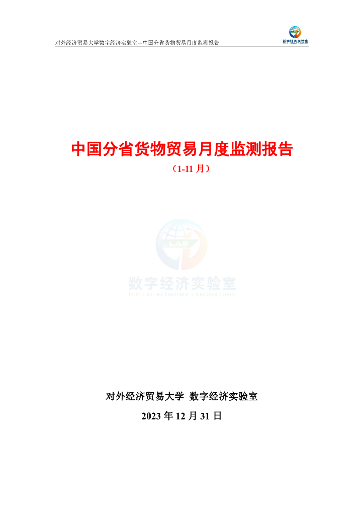 对外经济贸易大学:中国分省货物贸易月度监测报告(2023年1-11月).pdf