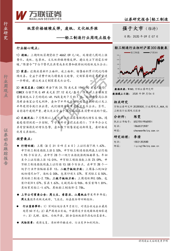 万联证券:轻工制造行业周观点报告:纸浆价格继续反弹,废纸、文化纸齐涨.pdf