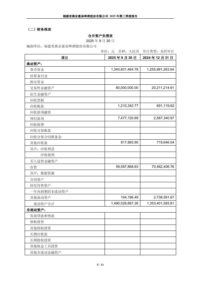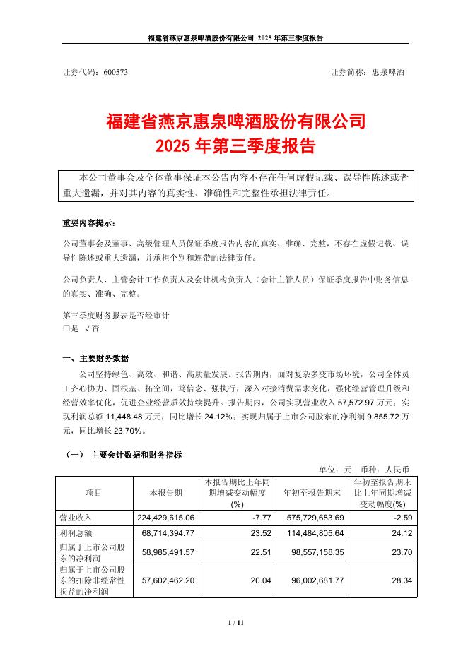 600573-惠泉啤酒:福建省燕京惠泉啤酒股份有限公司2025年第三季度报告.pdf