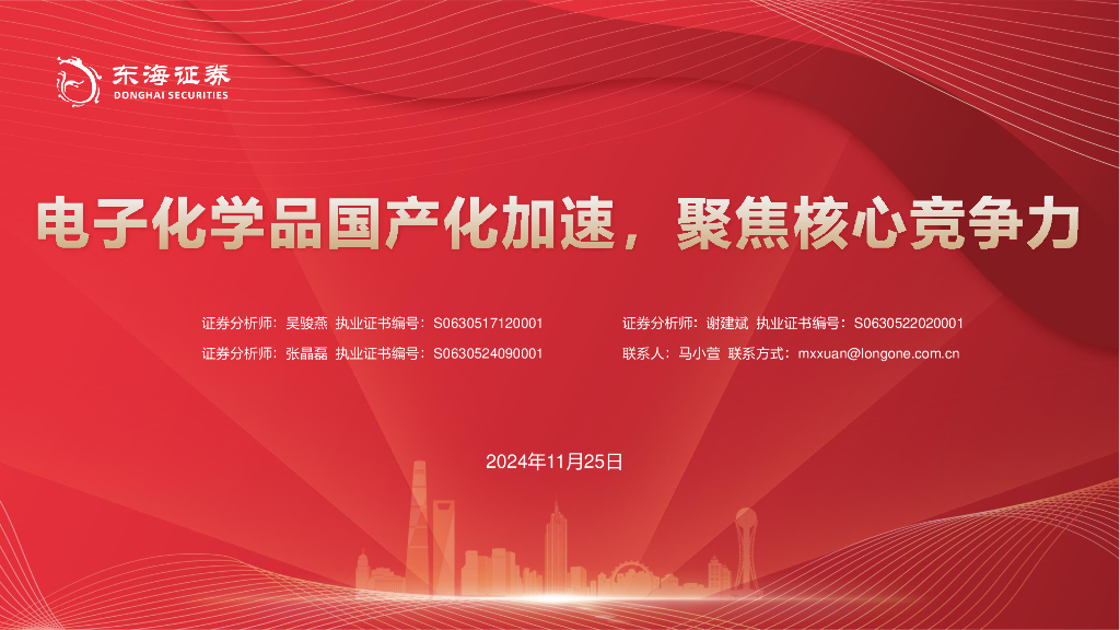 东海证券:电子化学品国产化加速,聚焦核心竞争力.pdf