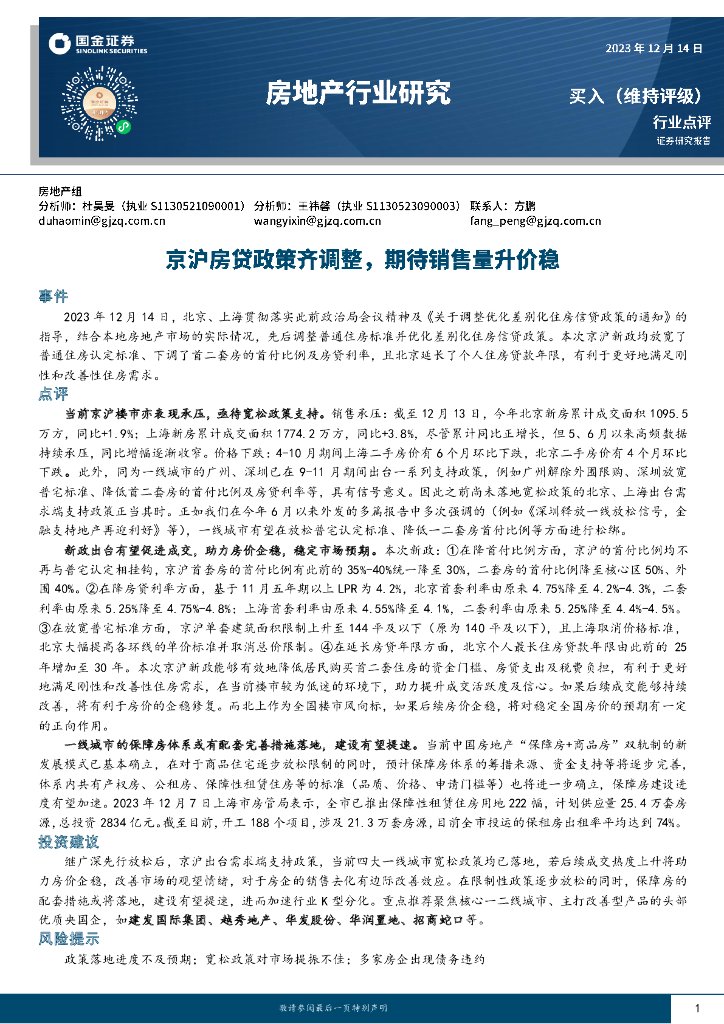 国金证券:房地产行业研究:京沪房贷政策齐调整,期待销售量升价稳.pdf
