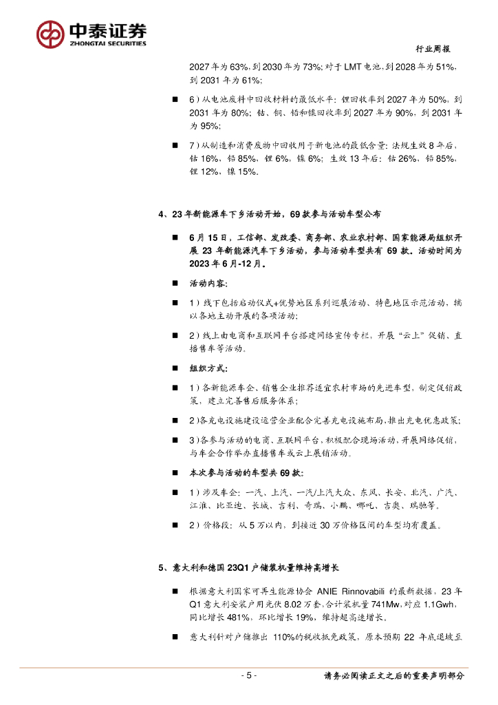 中泰证券:电力设备与新能源行业周报:新能源车下乡活动开始,风电修复曙光显现.pdf