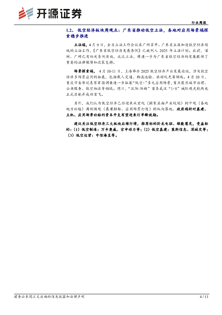 开源证券:电力设备行业周报:低空经济行业周报:(4月第2周)广东省加速低空立法,各地对应用场景探索稳步推进.pdf
