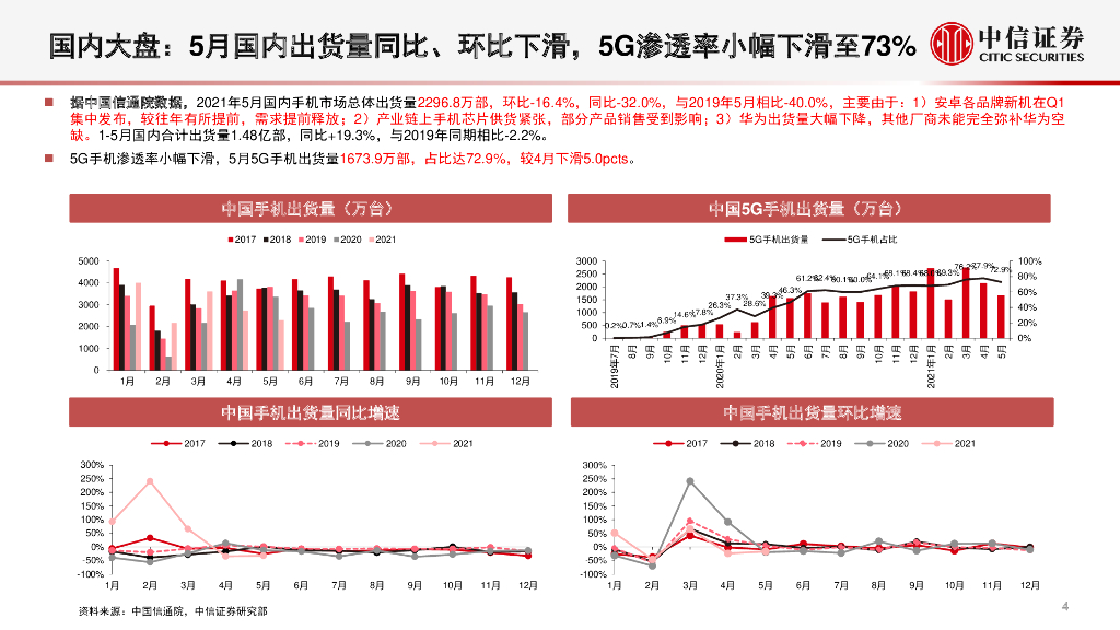 中信证券:智能手机行业深度追踪系列第15期——5月国内出货量持续低迷,6月有望改善.pdf