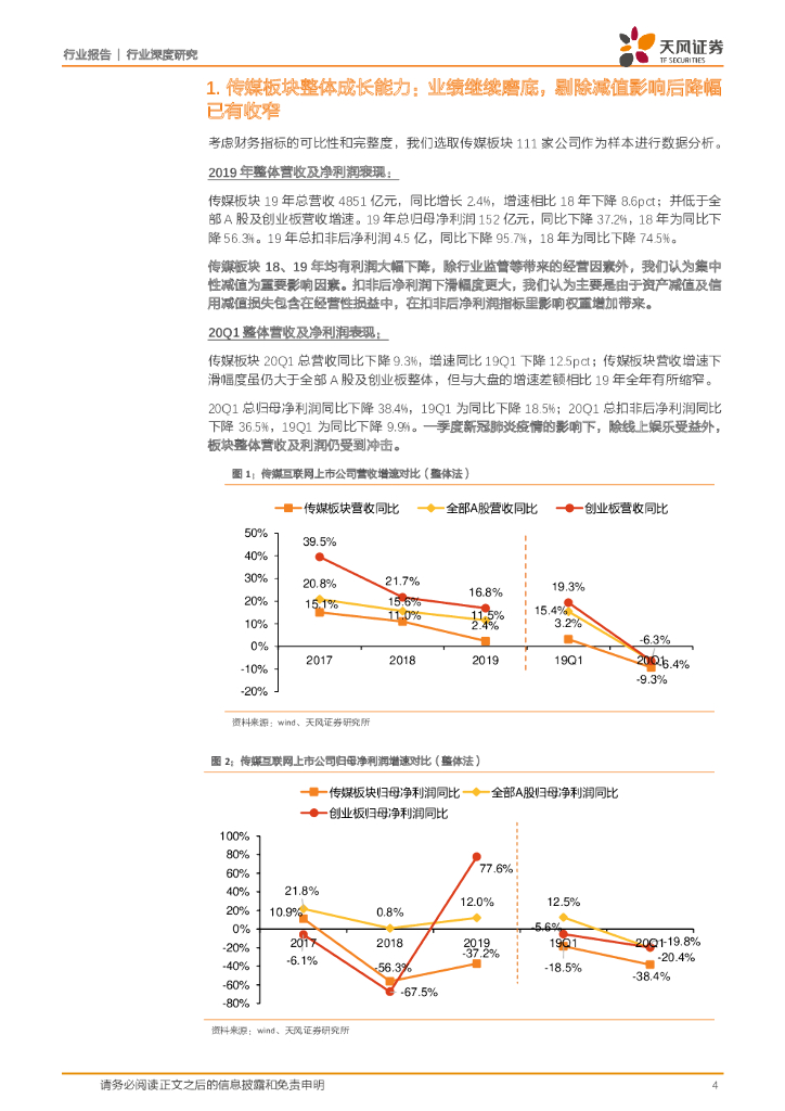 天风证券:传媒-19年&20Q1财报总结(总览篇):商誉质押压力减弱,现金流持续改善;疫情影响当期,中期复苏可期.pdf