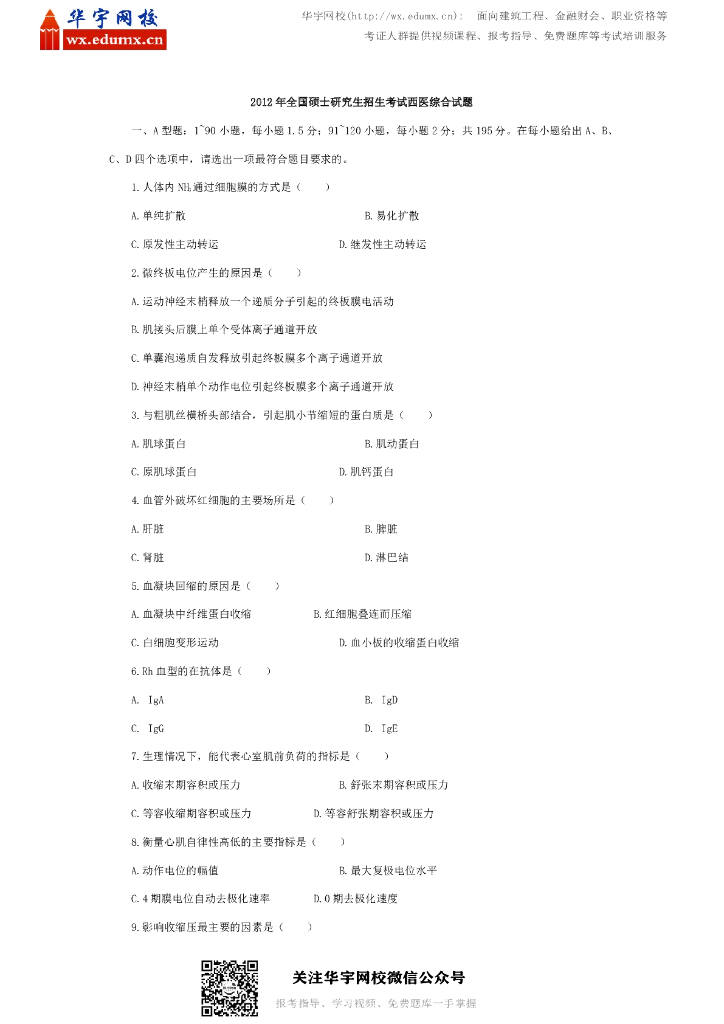 2012年全国硕士研究生招生考试西医综合试题.pdf