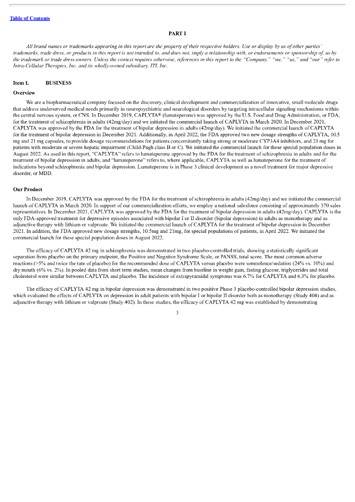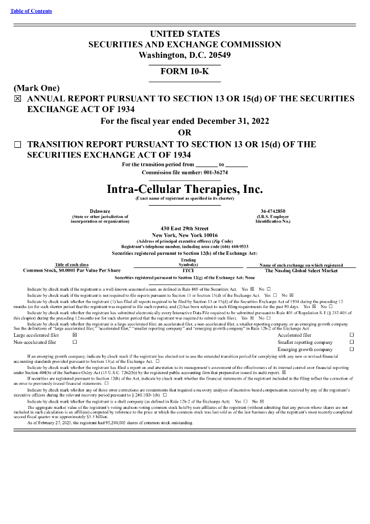Intra-Cellular Therapies Inc(ITCI)2022财年年度报告(英文版).pdf