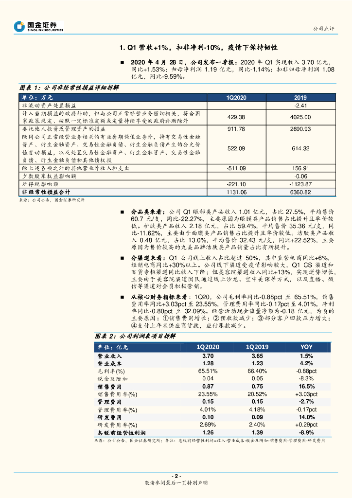 国金证券:丸美股份(603983)-营收+1%,扣非净利-10%,疫情下保持韧性.pdf