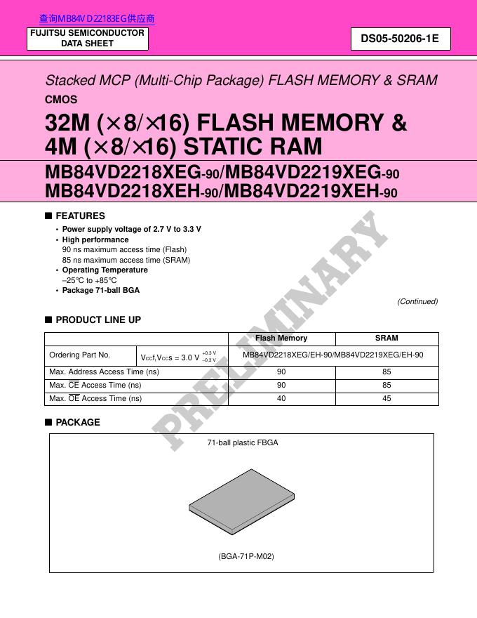 FUJITSU SEMICONDUCTOR MB84VD2218XEG/EH/2219XEG/EH-90 数据手册.pdf