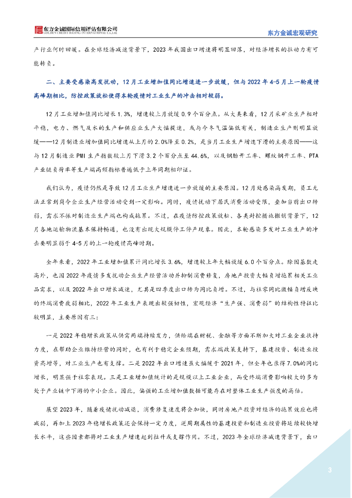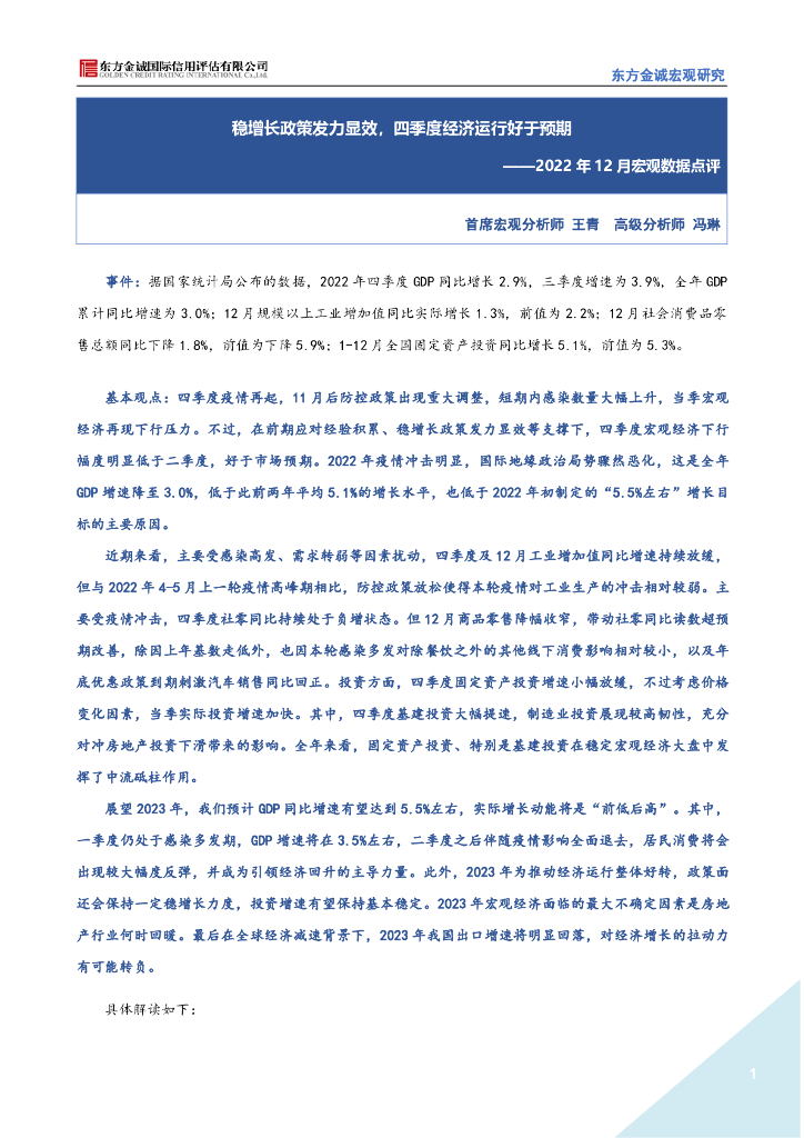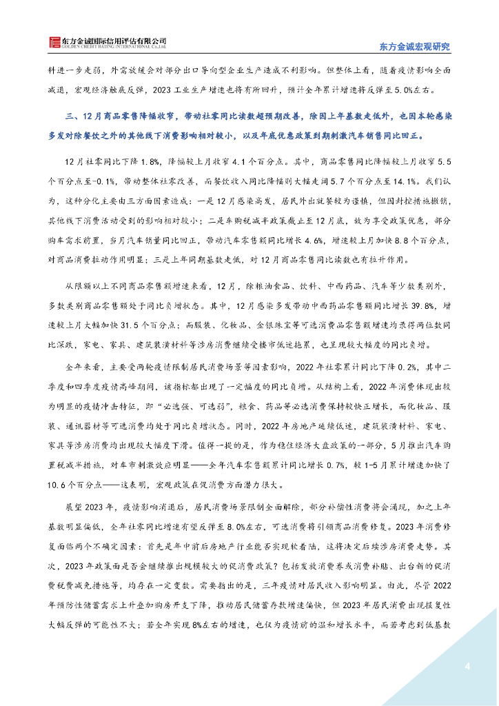东方金诚:稳增长政策发力显效,四季度经济运行好于预期(2022年12月宏观数据点评).pdf
