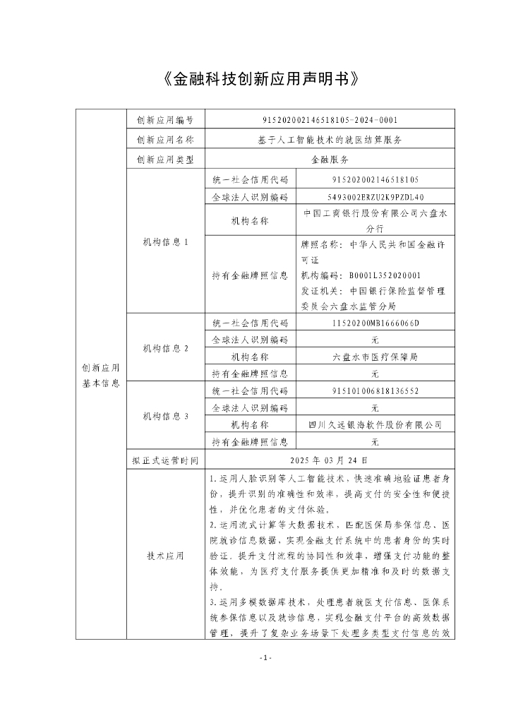 金融科技创新应用声明书:基于人工智能技术的就医结算服务.pdf