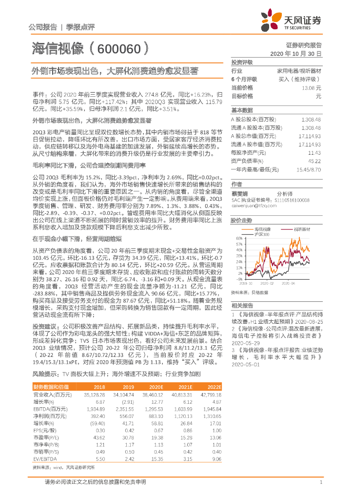 天风证券:海信视像(600060)-外销市场表现出色,大屏化消费趋势愈发显著.pdf