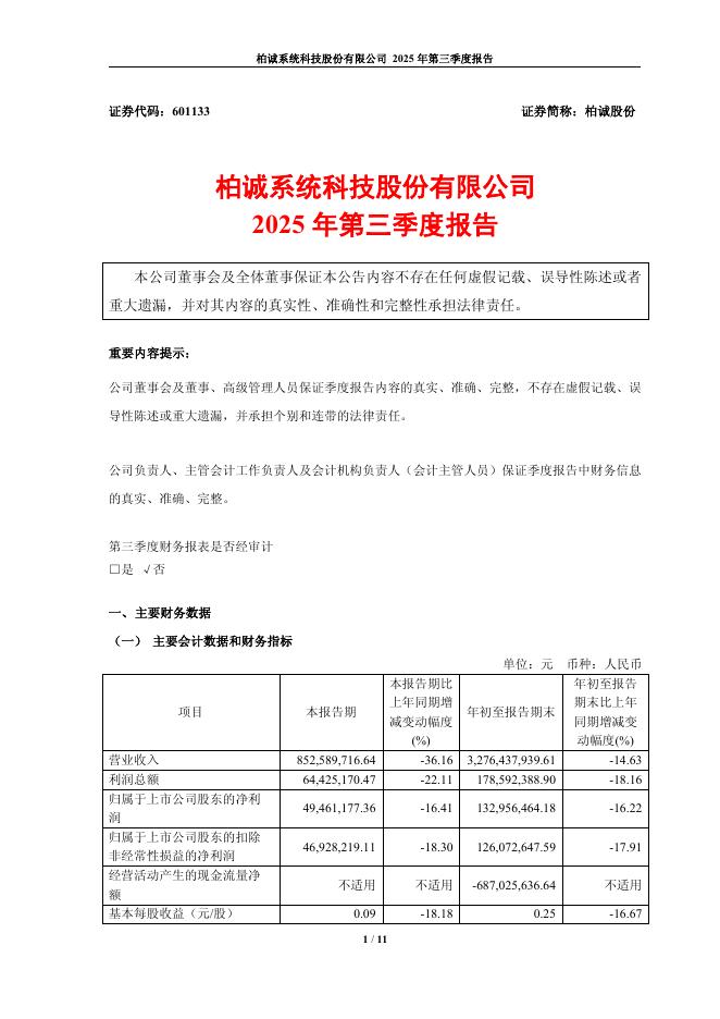 601133-柏诚股份:2025年第三季度报告.pdf