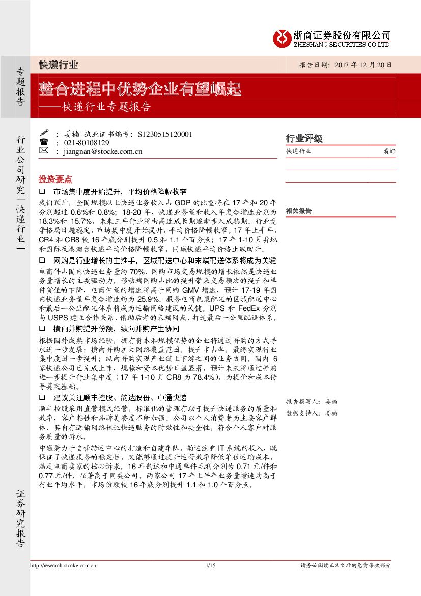 浙商证券:快递行业专题报告:整合进程中优势企业有望崛起.pdf