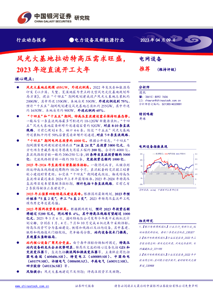 中国银河:电力设备及新能源行业行业动态报告:风光大基地拉动特高压需求旺盛,2023年迎直流开工大年.pdf