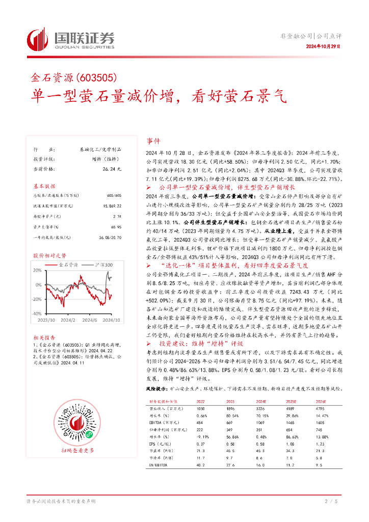 国联证券:金石资源(603505)-单一型萤石量减价增,看好萤石景气.pdf