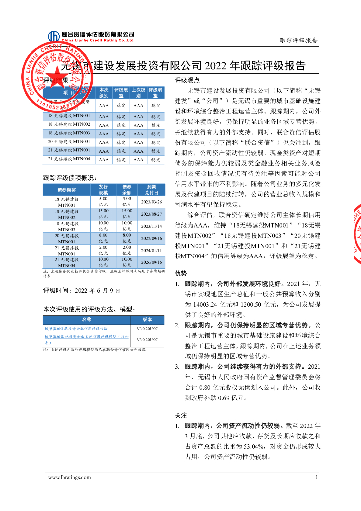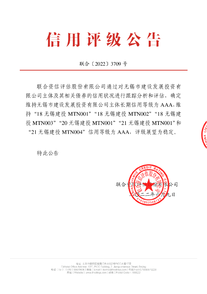 联合资信:无锡市建设发展投资有限公司2022年跟踪评级报告.pdf