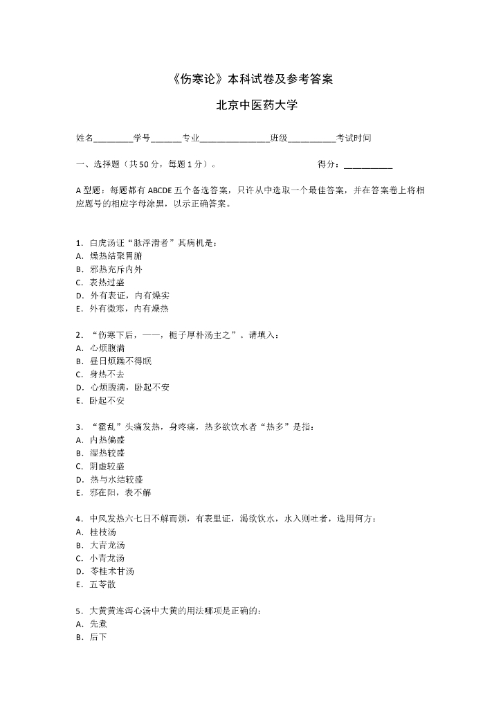 《伤寒论》伤寒习题.pdf