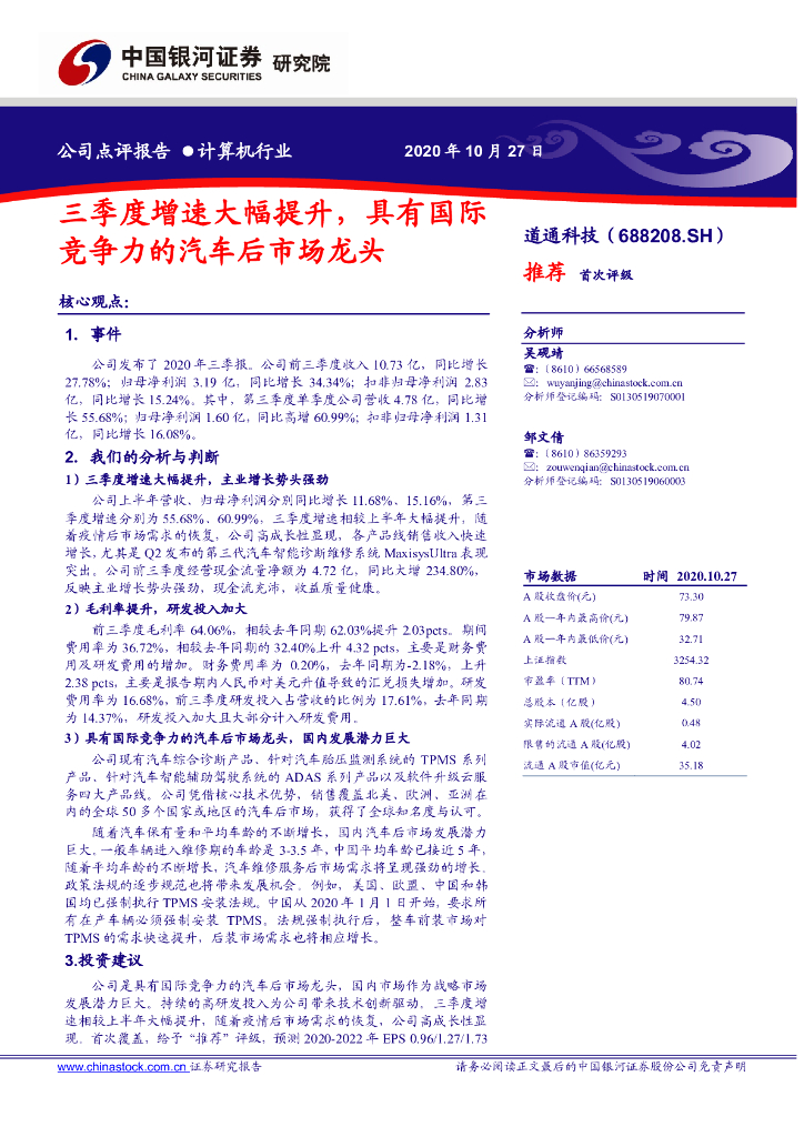 中国银河:道通科技(688208)-三季度增速大幅提升,具有国际竞争力的汽车后市场龙头.pdf