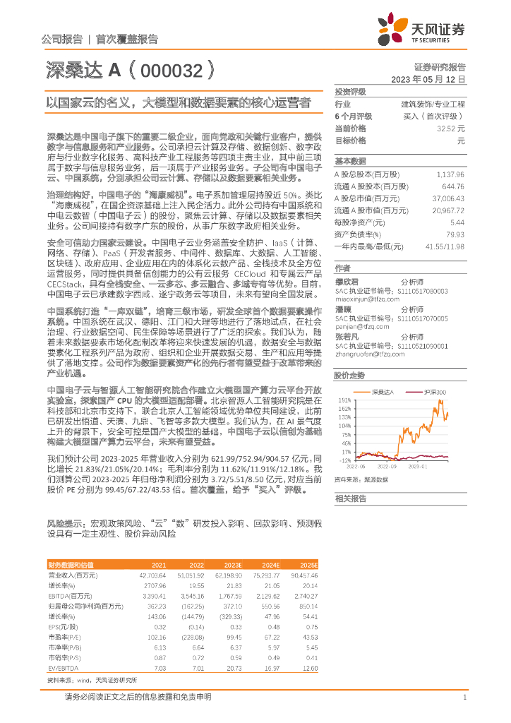 天风证券:深桑达A(000032)-以国家云的名义,大模型和数据要素的核心运营者.pdf