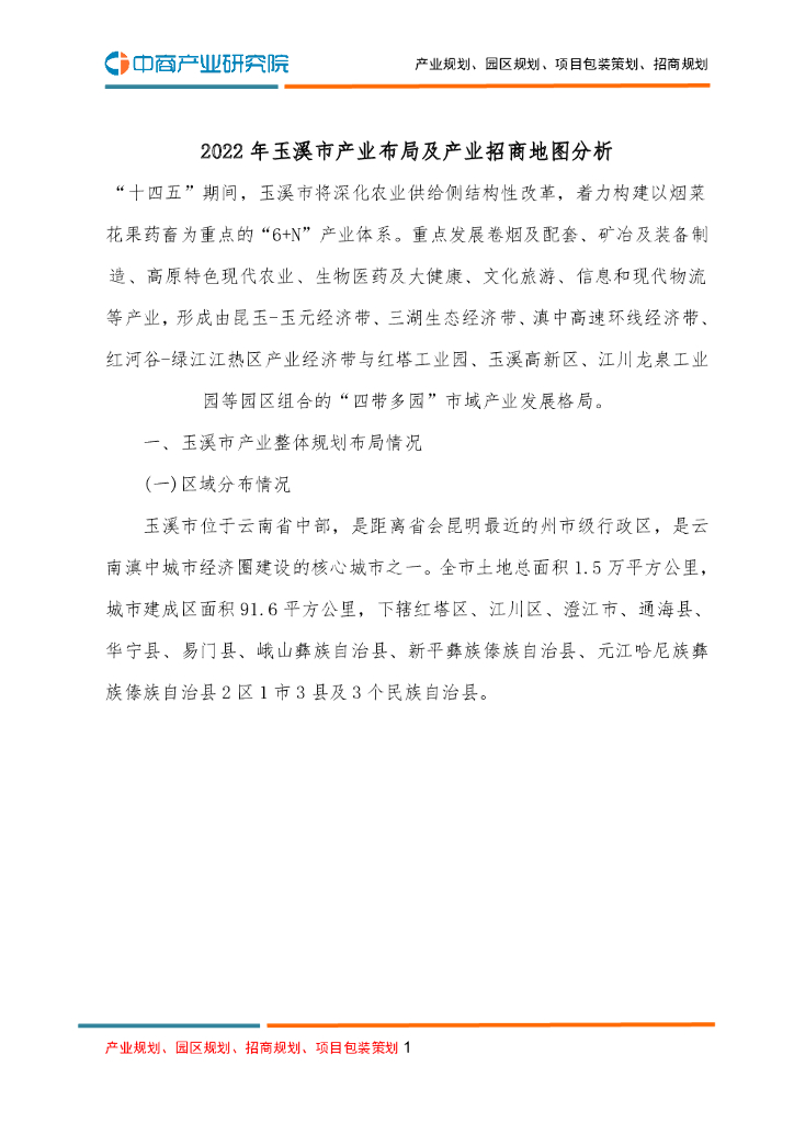 2022年玉溪市产业布局及产业招商地图分析.pdf