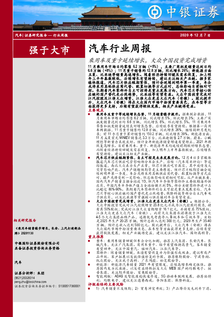 中银证券:汽车行业周报:乘用车及重卡延续增长,大众中国投资完成增资.pdf
