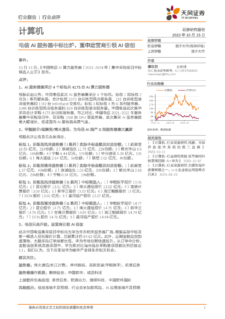天风证券:计算机:电信AI服务器中标出炉,重申运营商引领AI信创.pdf