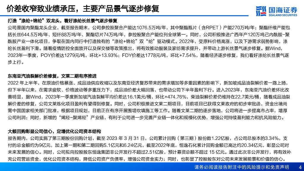 国海证券:恒逸石化(000703)-2022年报点评:价差收窄致业绩承压,主要产品景气逐步修复.pdf