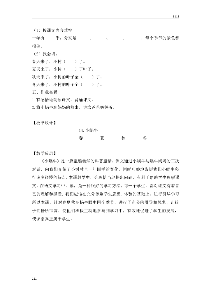 一年级语文(教案3)14 小蜗牛教学设计.doc