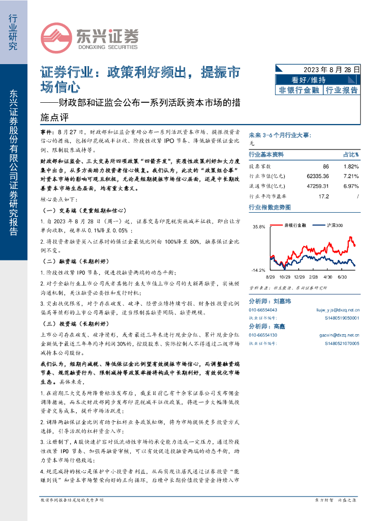 东兴证券:证券行业:政策利好频出,提振市场信心——财政部和证监会公布一系列活跃资本市场的措施点评.pdf