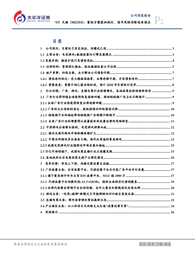 太平洋证券:*ST天娱(002354)-重组方案获批执行,退市风险消除迎来拐点.pdf