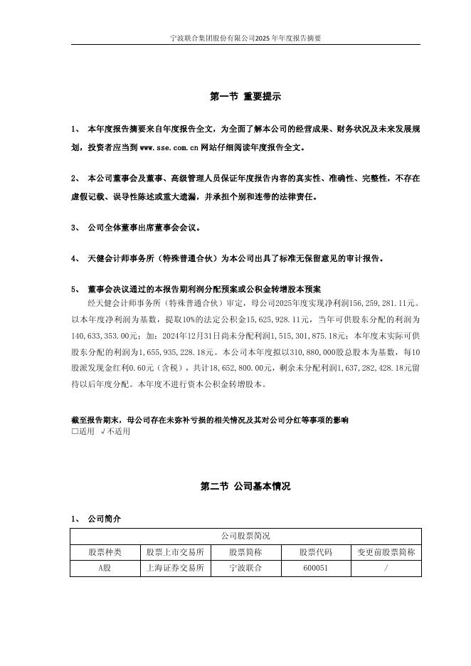 600051-宁波联合:宁波联合2025年度报告摘要.pdf