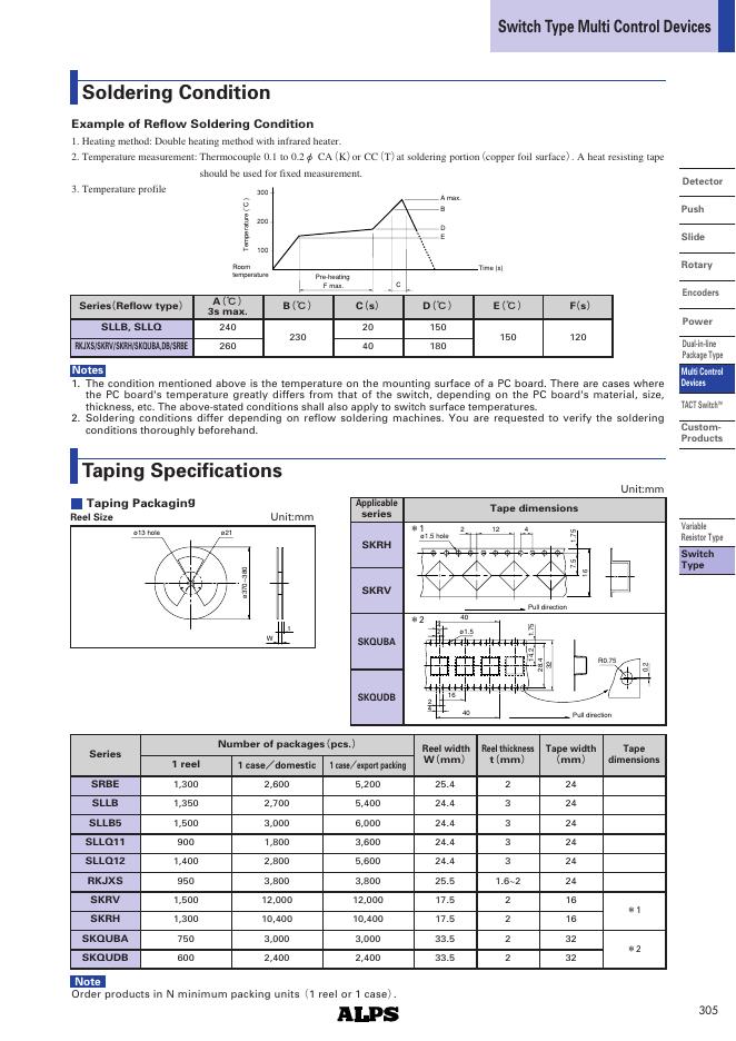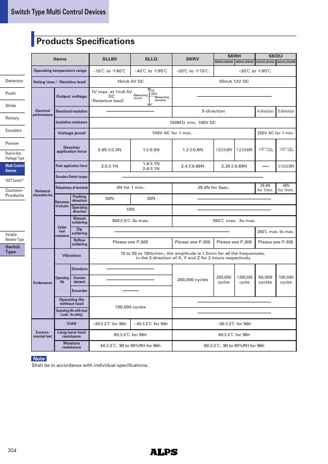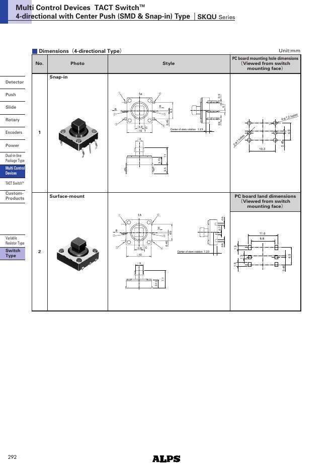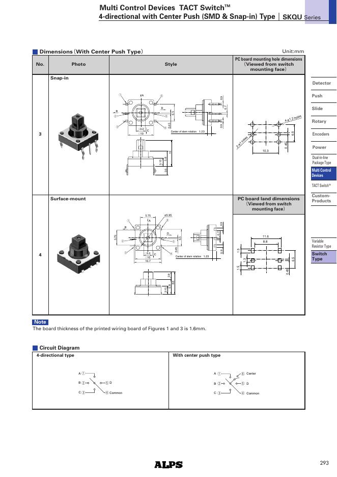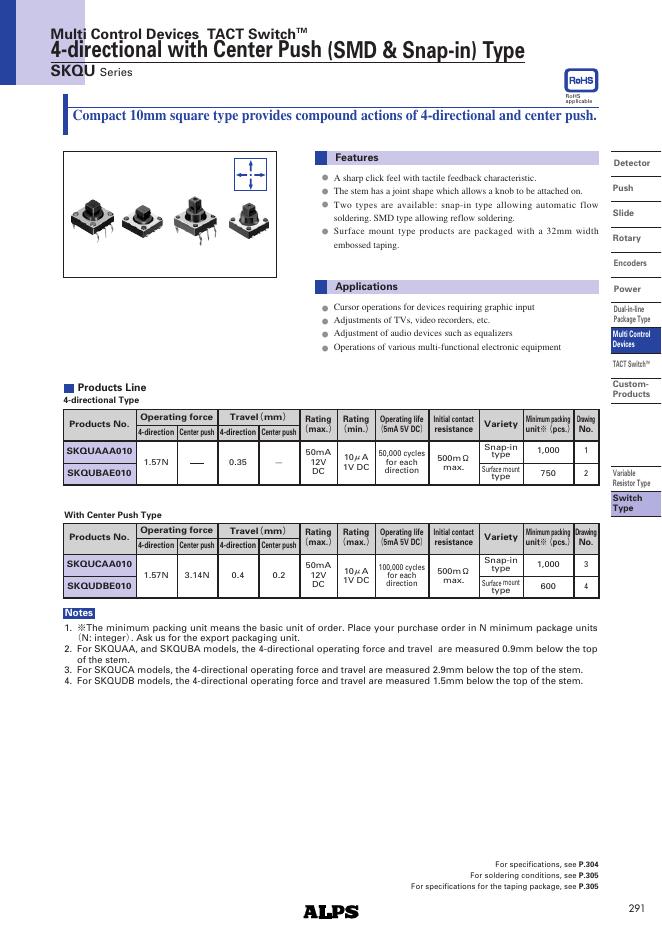 ALPS SKQU Series Multi Control Devices TACT Switch 4-directional with Center Push (SMD & Snap-in) 数据手册.pdf