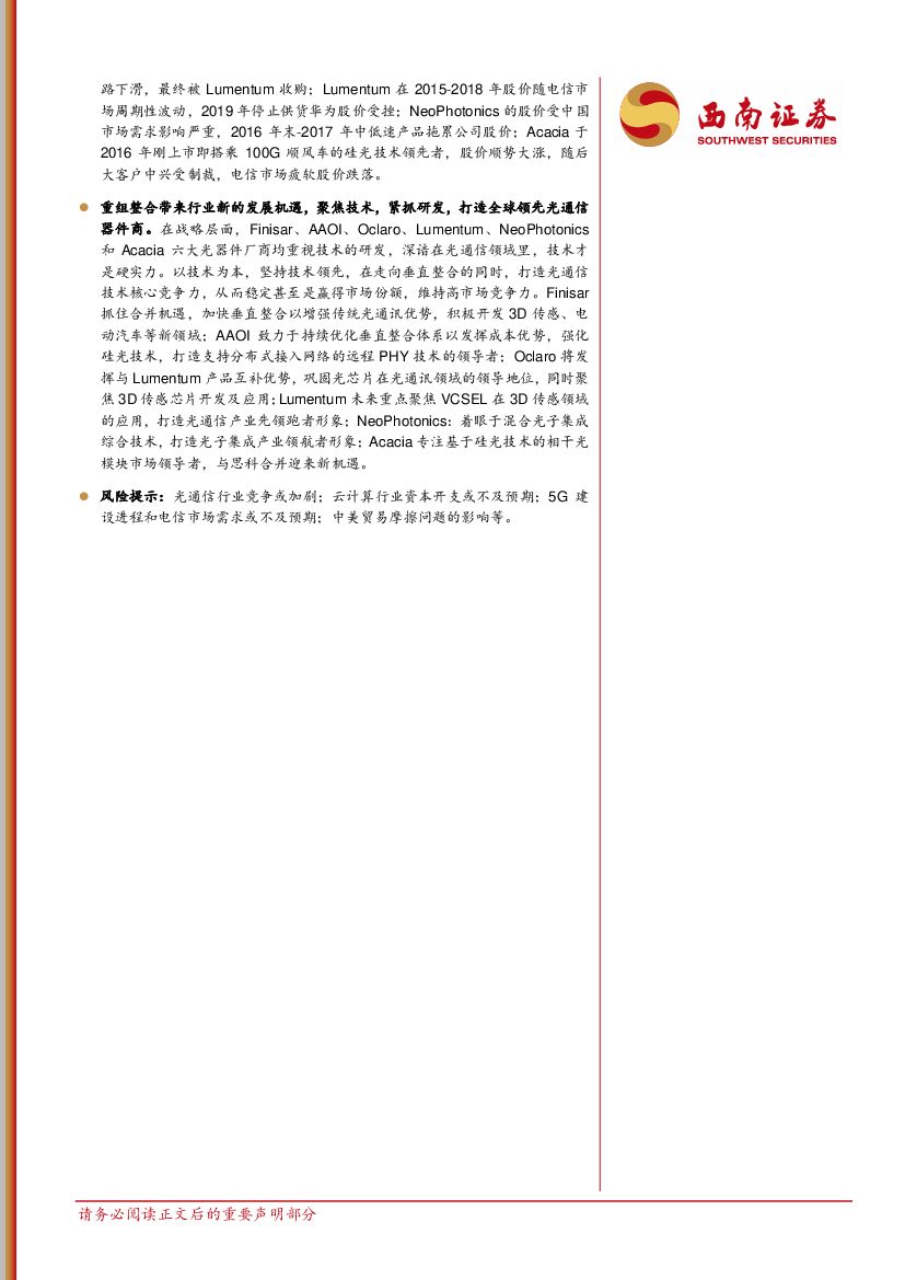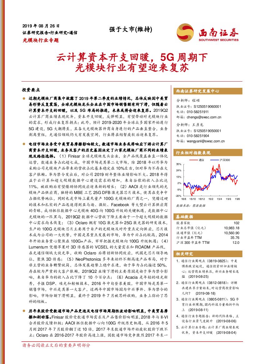 西南证券:光模块行业专题:云计算资本开支回暖,5G周期下光模块行业有望迎来复苏.pdf