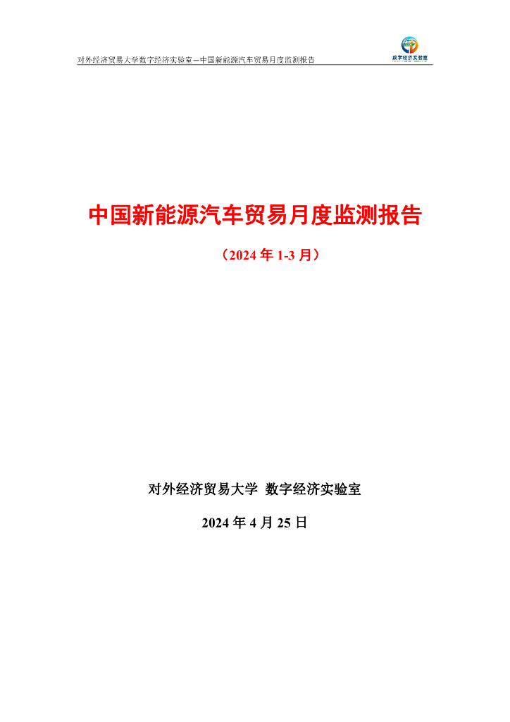 对外经济贸易大学:中国新能源汽车贸易月度监测报告(2024年1-3月).pdf