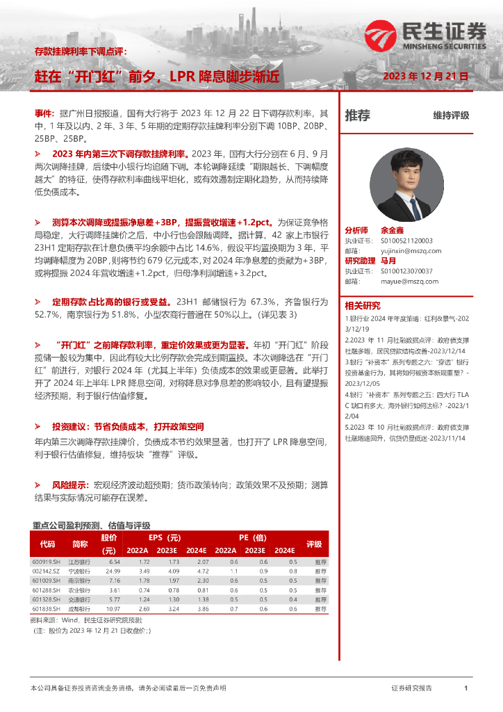 民生证券:存款挂牌利率下调点评:赶在“开门红”前夕,LPR降息脚步渐近.pdf