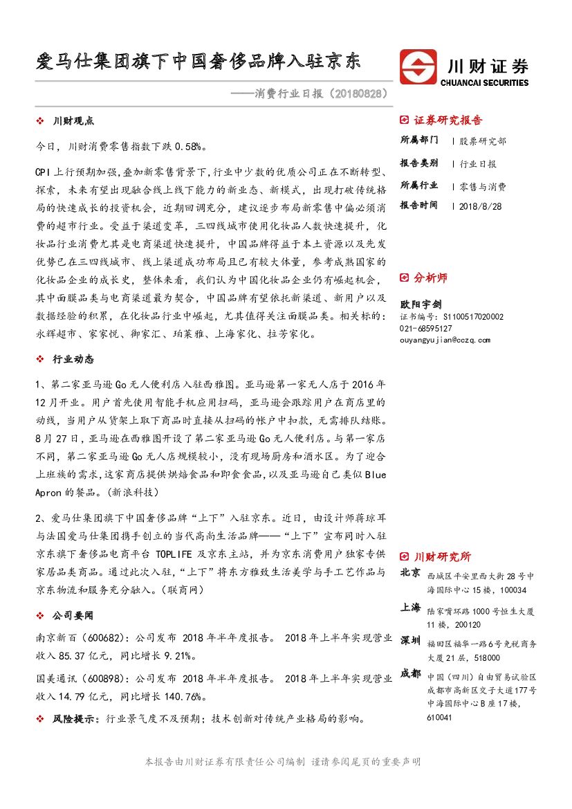 川财证券:消费行业日报:爱马仕集团旗下中国奢侈品牌入驻京东.pdf