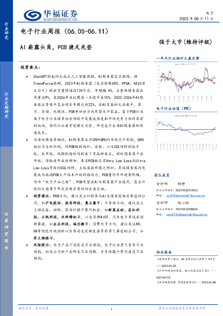 华福证券:电子行业周报:AI崭露头角,PCB捷足先登.pdf