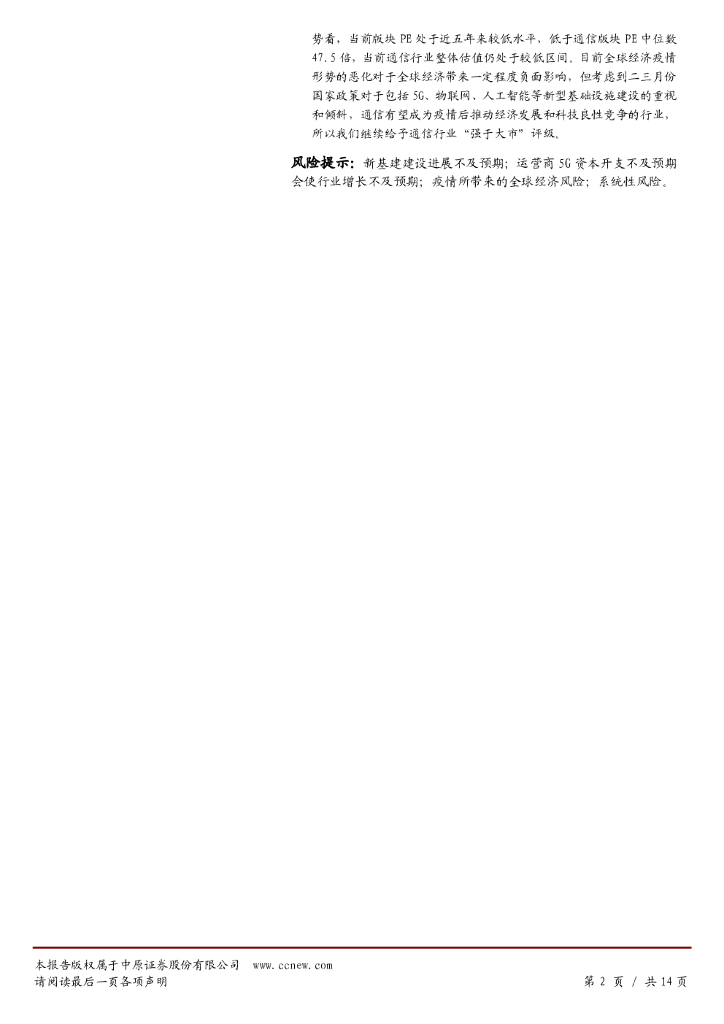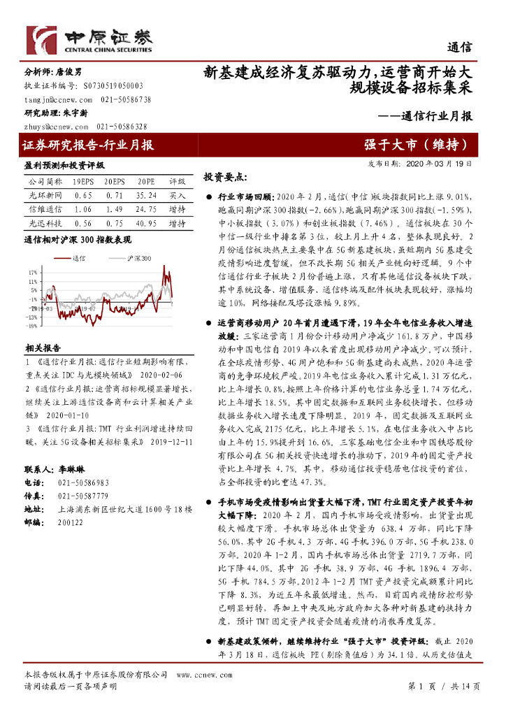 中原证券:通信行业月报:新基建成经济复苏驱动力,运营商开始大规模设备招标集采.pdf